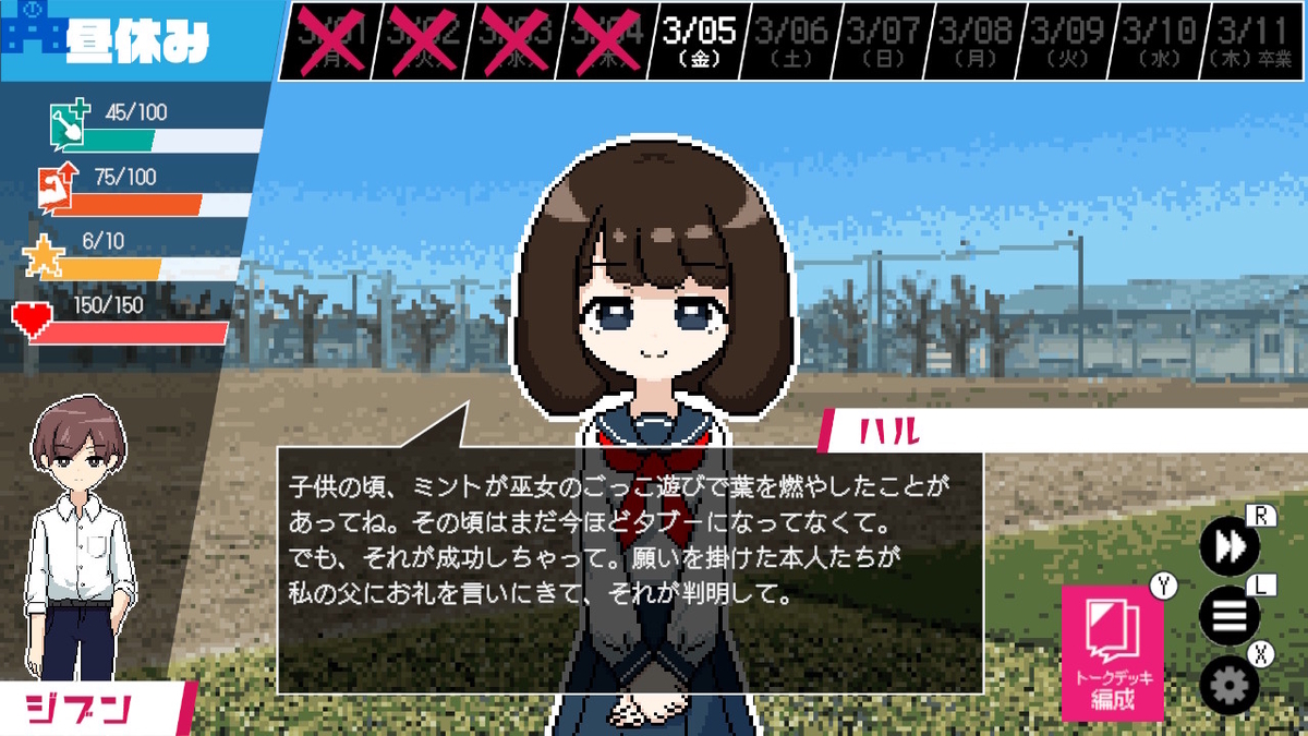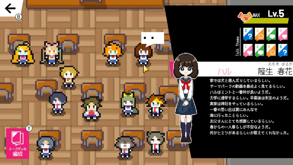 序盤は一部の生徒としか話せないが、ストーリーを進めることで解放される。
