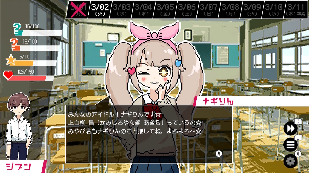 『ときめきメモリアル』風のUIは、恋愛シミュレーションゲーム的な印象を強く意識させ、それにより主人公の没個性をプレイヤーに自然と受け入れさせる仕掛けとして機能している。