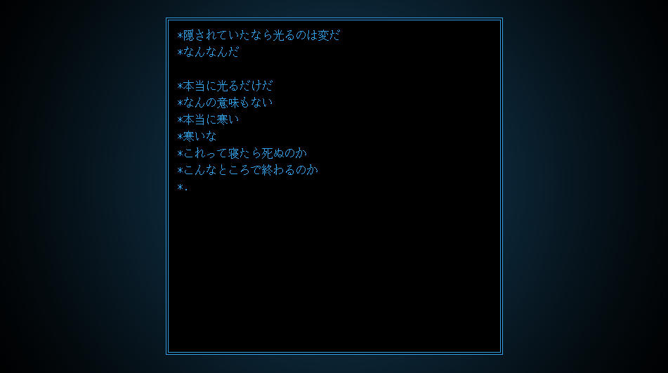 ネタバレは伏せるが、ゲームはただテキストを読むだけのシンプルなもので、プレイヤーは画面をクリックして機械を光らせることしかできない。